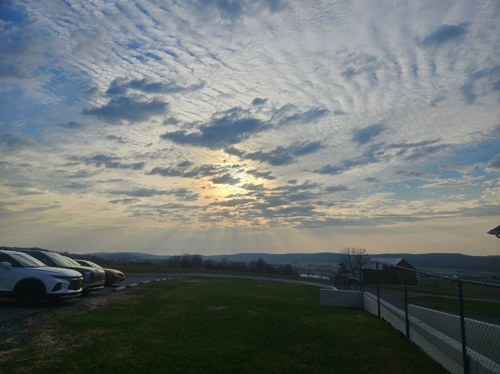 Golden rays touched the world with warmth this morning as the sun rose over the hills once again. I paused to take in the beauty, simply enjoying the stillness at the beginning of what promised to be another lovely spring day.